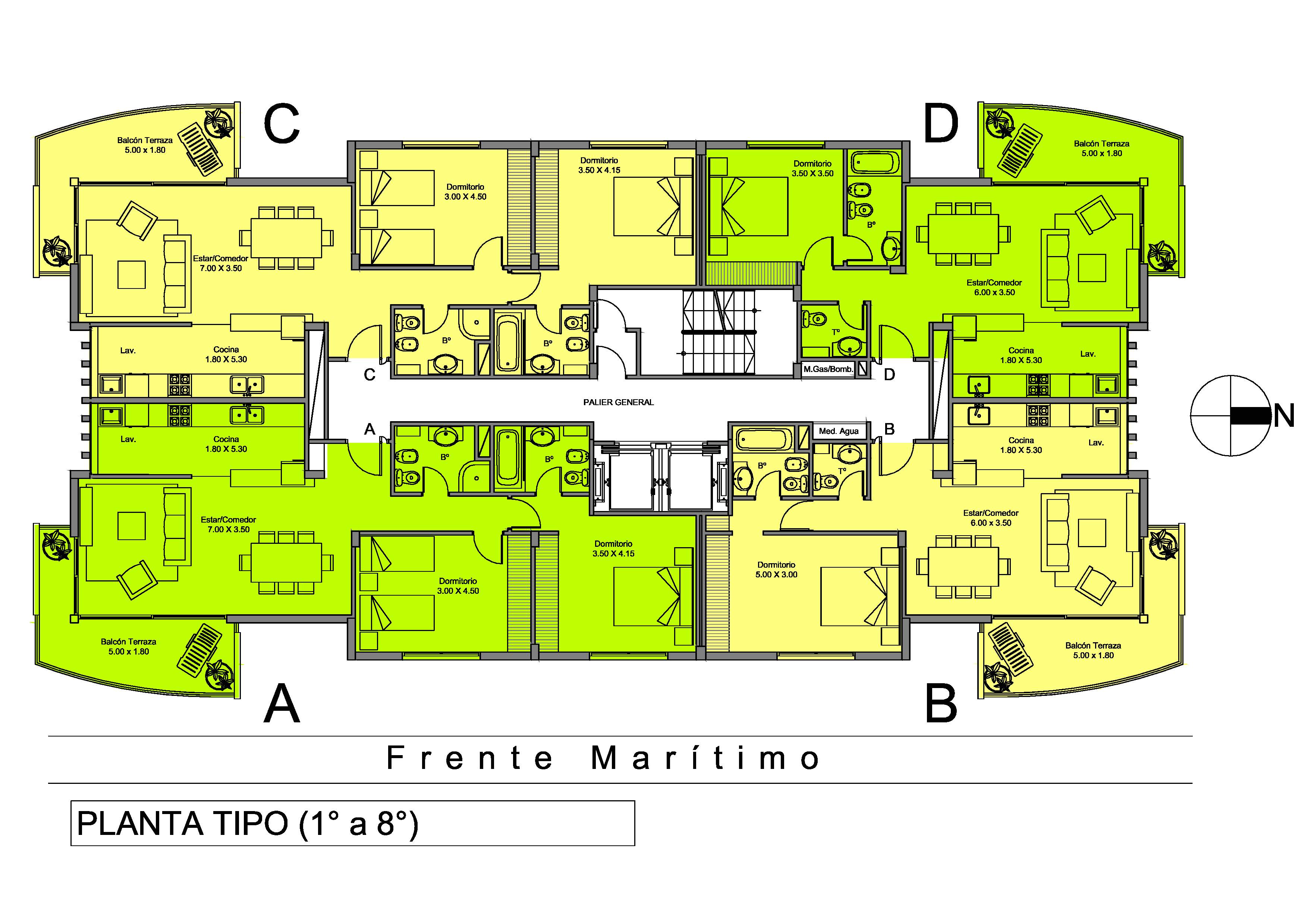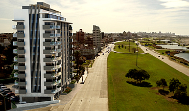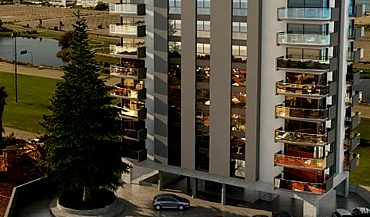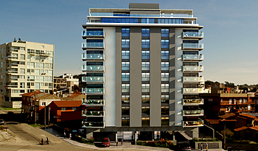 Viviendas en torre. Se diseña para un terreno irregular de esquina, frente al mar, en la zona de Punta Mogotes, unidades de viviendas de uno y dos dormitorios, donde se priorizo para cada ámbito social un barrido visual de 180° hacia la playa, el puerto, el golf, barrio Los Troncos para la orientación noreste y la playa, el Faro, playas del sur, bosque Peralta Ramos para el suroeste. Nos encontramos con una gran particularidad, la existencia de una hermosa araucaria en el centro del predio. Basto analizar distintas hipótesis arquitectónicas para concluir contundentemente en rescatarla e incorporarla al conjunto arquitectónico.