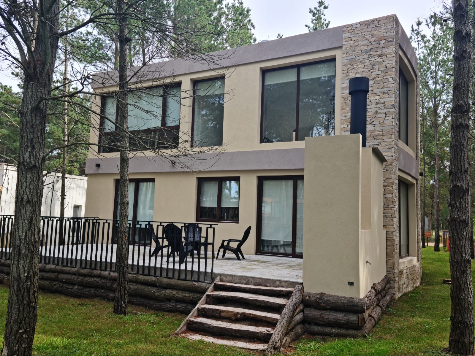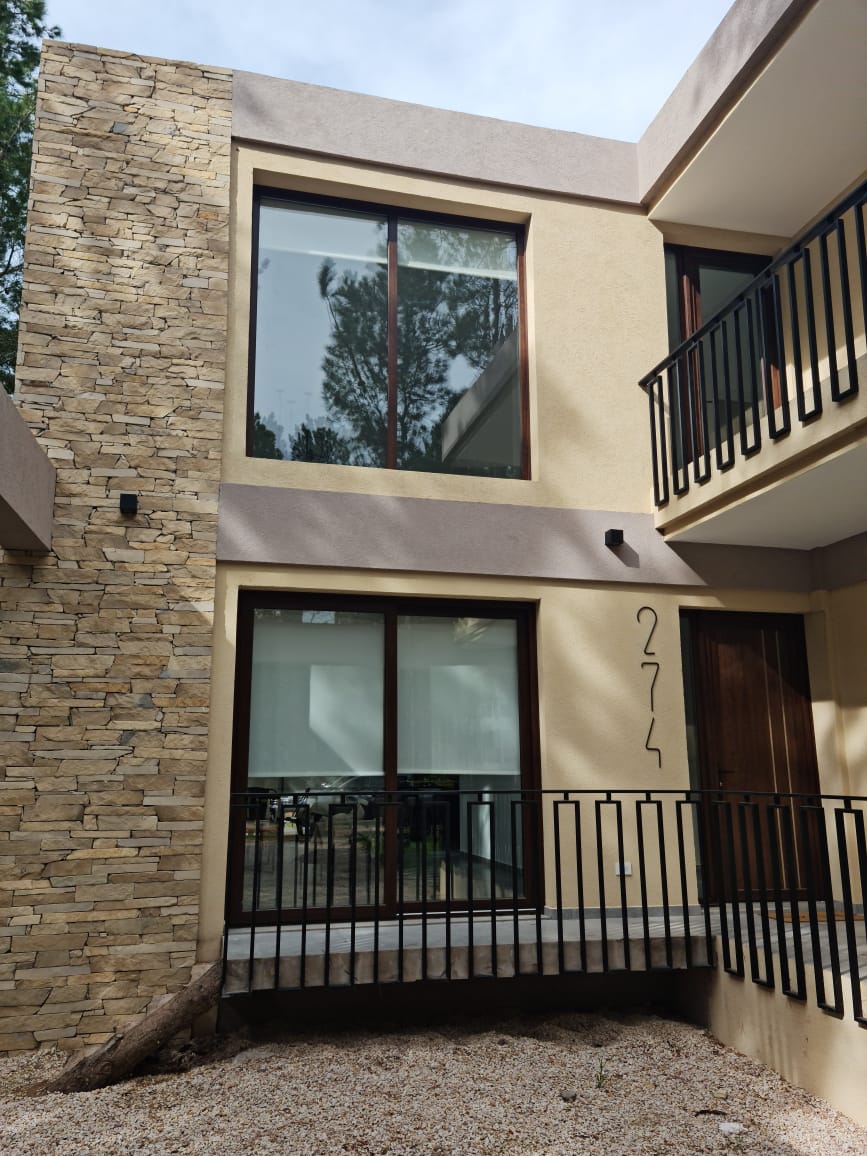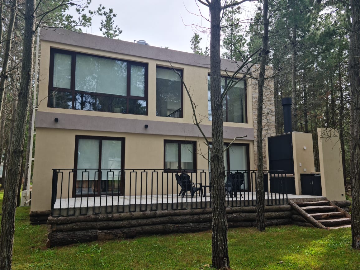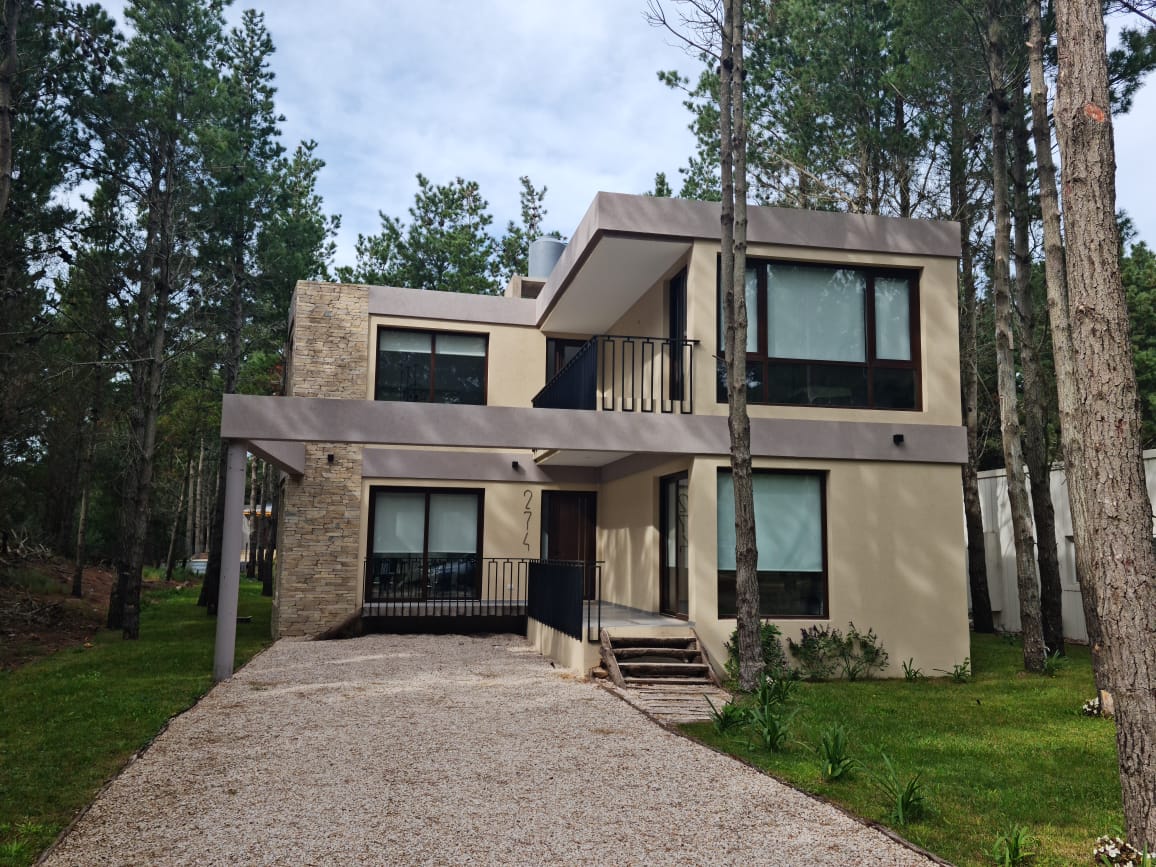 Vivienda unifamiliar. Ubicada en el Barrio Senderos IV - Costa Esmeralda, se proyecta una vivienda en dos plantas de 200m2 cubiertos y 15m2 de superficie semicubierta. La idea surgió de generar una doble altura que conforma los espacios interiores. La casa cuenta con un estar-comedor con cocina integrada que expande hacia el exterior del contrafrente conformado por una terraza con parrilla. En planta alta, cuenta con 2 dormitorios con baños privados y un sector de usos múltiples que “balconea” hacia la sala de estar inferior.